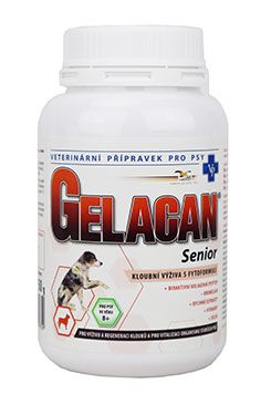 Gelacan® Senior je veterinární přípravek - nutraceutikum s bioaktivními kolagenními peptidy a bylinnými extrakty pro výživu a regeneraci pohybového aparátu a pro celkové posílení a vitalizaci organismu psů.