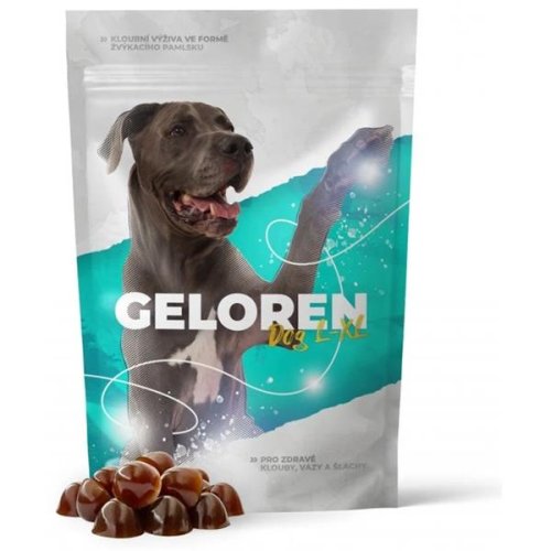 Geloren DOG L-XL - kloubní výživa ve formě žvýkacího pamlsku Geloren DOG je k dispozici ve dvou velikostech pro menší a větší plemena. Navíc ochucena játrovou příchutí, která je pejsky dobře přijímána. Doporučujeme podávat Geloren DOG...