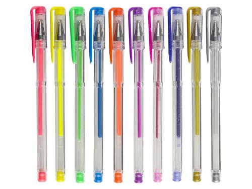 Gelová pera 10 ks, balení obsahuje – 6 ks neonových, 2 ks třpytivých a 2 ks metalických.