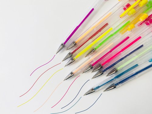 Gelová pera 18 ks – 6 ks neonových, 6 ks třpytivých a 6 ks pastelových.