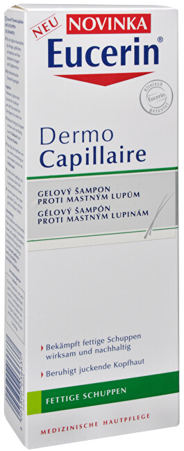 Gelový šampon DermoCapillaire proti mastným lupům je vhodný pro odstranění nažloutlých ložisek lupů u vlasových kořínků.