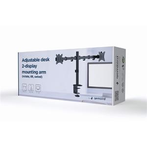 Adjustable desk 2-display mounting arm (rotate, tilt, swivel), 17”-32”, up to 9 kg