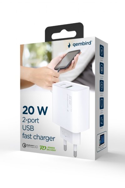 2portová 20W USB rychlá nabíječka: podporuje specifikaci QC 3.0 a PowerDelivery (PD)