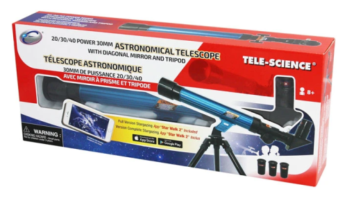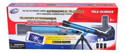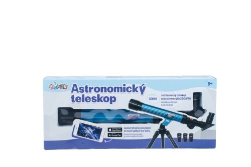 Pomocí tohoto teleskopu můžeš pozorovat noční oblohu. Součástí je i kód do mobilní aplikace, která ti pomůže pojmenovat všechny hvězdy na nebi.