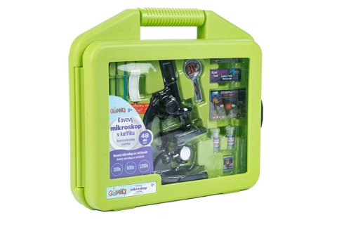 Kvalitní kovový mikroskop je perefektní přístroj pro objevování světa, který nemůžeš vidět pouhým okem. Zvětšení až 1200x. Kufřík obsahuje vše potřebné pro zkoumání.