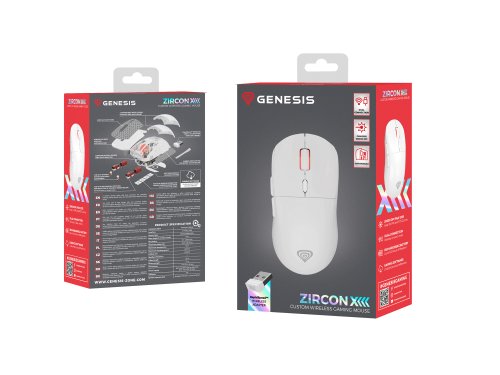 SEZNAMTE SE S ZICRON X Seznamte se s jednou z nejpokročilejších myší na trhu. Představujeme vám GENESIS Zircon XIII - kompletní konstrukci nabízející vše, co skutečně potřebujete. Plné přizpůsobení hardwaru (vyměnitelné spínače, vzdálenosti, pružiny), jeden z nejlepších snímačů na světě(Pixart PAW3395) a technologie bezdrátového připojení(RapidSpeed™ Wireless) pro skutečně drátový výkon, a to není vše. S GENESIS Zircon XIII hra teprvezačíná.