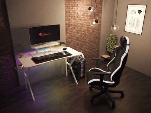 Genesis Holm 320 RGB je moderní bílý herní stůl, který dokonale uspořádá prostor pro hráče a potěší fenomenálním designem. Velká užitná plocha v kombinaci se stabilní konstrukcí zajistí pohodlí a odolnost a působivé RGB podsvícení dodá stojanu skutečně jedinečný charakter.