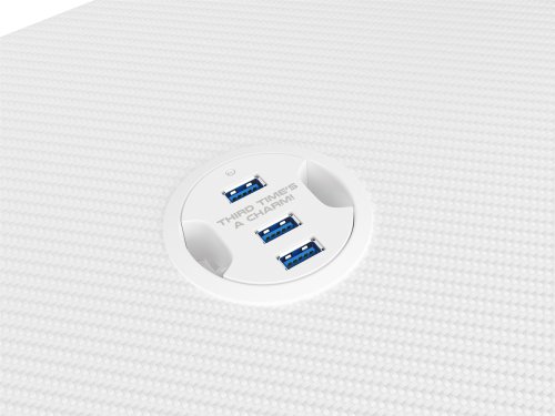 Stůl je vybaven HUBem se třemi porty USB 3.0 a přihrádkami na kabely pro připojení dalšího vybavení a uspořádání kabelů. Vestavěná bezdrátová indukční nabíječka v desce stolu vám umožní kdykoli nabíjet mobilní zařízení a mít je stále na očích. Vsaďte na praktická řešení a nenechte se omezovat!