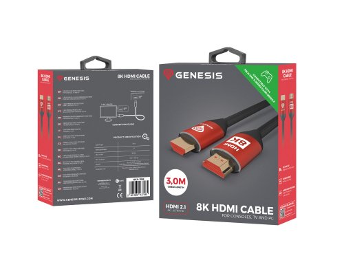 Vybavte se kabelem HDMI Genesis 8K a využijte své zařízení na maximum. Nejnovější standard HDMI 2.1 podporuje vysoká rozlišení a nejnovější technologie. To poskytuje nezapomenutelný herní zážitek.