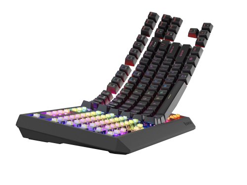 HRAJTE PODLE SVÝCH PRAVIDEL Klávesnice GENESIS Thor 230 TKL Wireless je vybavena různými typy spínačů. Každý z nich se vyznačuje vysokou přesností, aktivací bez ohledu na místo stisknutí klávesy a vysokou dynamikou. Víme však, že jako hráč můžete mít své vlastní preference. Proto jsme v GENESIS Thor 230 TKL Wireless implementovali hot - swap - techniku, která vám umožní vyměnit jakýkoli třípinový mechanismus za mikrospínač od společností jako Outemu, Akko, KTT. Jednoduše vytáhněte nainstalovaný mechanismus a zapojte nový. Díky systému Hot Swap také nemusíte kupovat novou klávesnici, když jeden spínač selže. Můžete jej vyměnit během několika sekund.