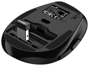 Napájení zajišťují dvě AAA baterie dodávané v balení. Myš disponuje funkcí automatického uspání pro maximální výdrž baterie při dlouhodobém nepoužívání.