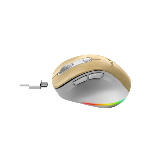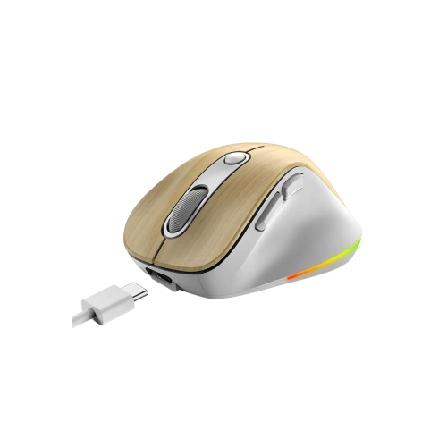 Ergonomická bezdrátová myš v kompaktním provedení disponuje optickým senzorem s nastavitelným rozlišením až 2400 DPI. Připojení k počítači je realizováno bezdrátově skrze Bluetooth nebo miniaturní USB přijímač a rozhraní 2,4 GHz. Myš se dokáže připojit až ke 3 zařízením zároveň, mezi nimi pak můžete přepínat stiskem jediného tlačítka (Dual BT režim + 2,4 GHz). USB přijímač lze pro snadné přenášení uschovat v těle myši. Napájení zajišťuje vestavěná dobíjecí baterie s kapacitou 500 mAh, kterou lze nabíjet pomocí USB-C portu. Potěší také stylové sedmibarevné podsvícení.