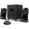 Dřevěný reproduktorový systém v konfiguraci 2.1 s celkovým výkonem 10 W RMS. 3,5" subwoofer nabízí dokonale hluboké basy a dva 2" satelity zajistí vysoké vokály. Potěší také ovládání hlasitosti, výstup pro sluchátka a vstup pro mikrofon na podsvíceném ovládacím modulu. Připojení je realizováno pomocí 3,5 mm jack konektoru. Napájení má na starost externí napájecí adaptér.