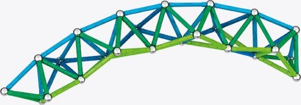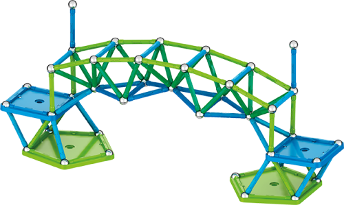 Magnetická stavebnice GEOMAG Classic ze 100% recyklovatelného materiálu. Stavebnice obsahuje 68 magnetických tyček v kombinaci světle modré, tmavě modré, zelené a limetkové barvy, 68 ocelových kuliček, 3 modré čtvercové a 3 limetkové pětiúhelníkové plastové podstavce. Celkem 142 dílků. Stavebnice je určena pro děti od 3 let. Vyrobeno ve Švýcarsku.