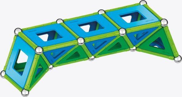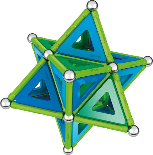 Magnetická stavebnice GEOMAG Classic Panels ze 100% recyklovatelného materiálu. Stavebnice obsahuje 36 zelených magnetických tyček, 36 ocelových kuliček, 42 výplní v modré a zelené barvě. Celkem 114 dílků. Stavebnice je určena pro děti od 5 let.