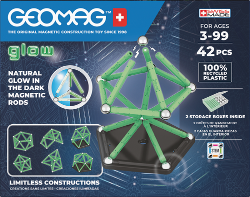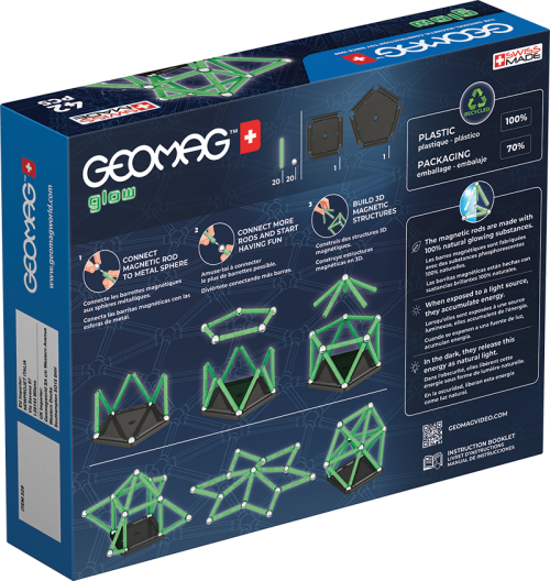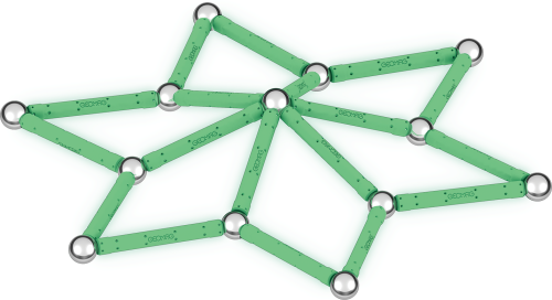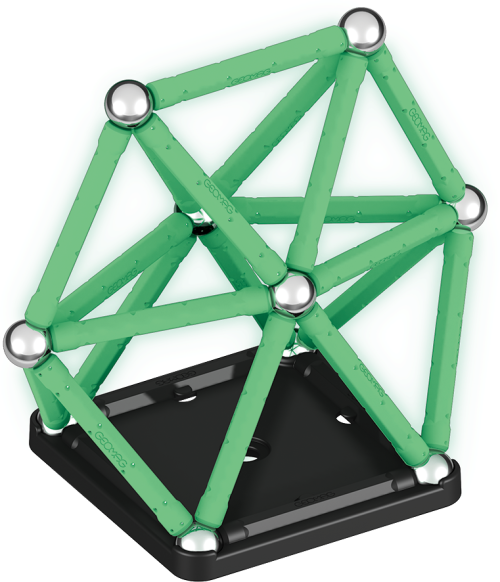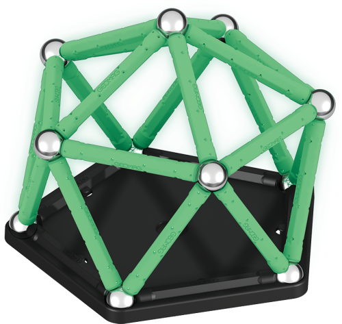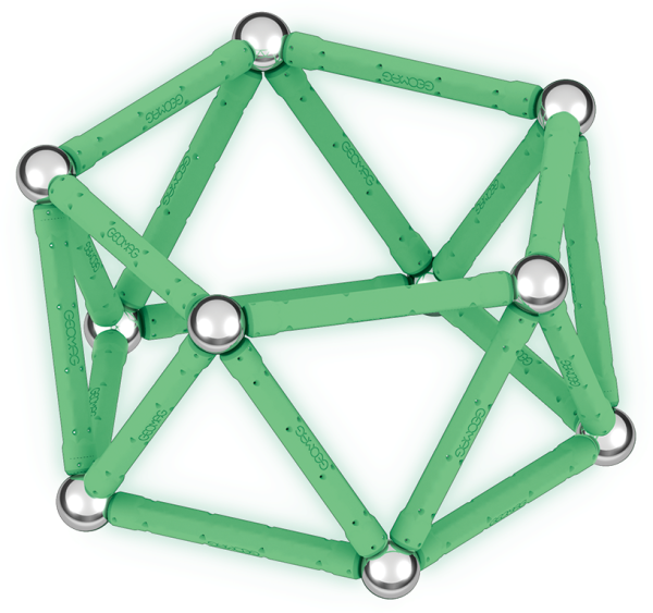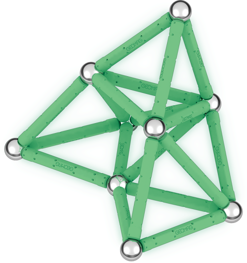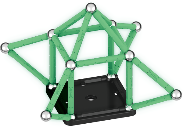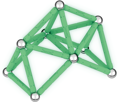 Ve tmě zářící magnetická stavebnice ti přinese nový rozměr zábavy. Stavebnice ze 100% recyklovaného plastu se ve tmě rozhodně neztratí! Balení obsahuje celkem 42 dílků – 20 svítících tyček, 20 kuliček a dva stabilní podstavce černé barvy ve tvaru čtverce a pětiúhelníku. Určeno pro děti od 3 let.