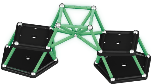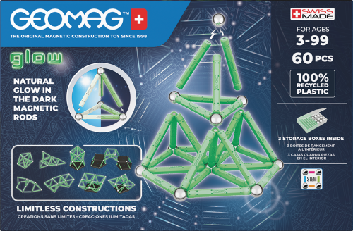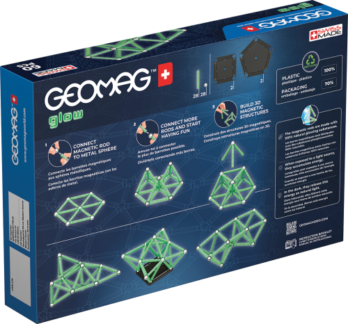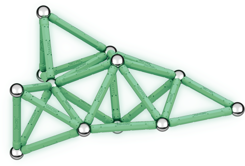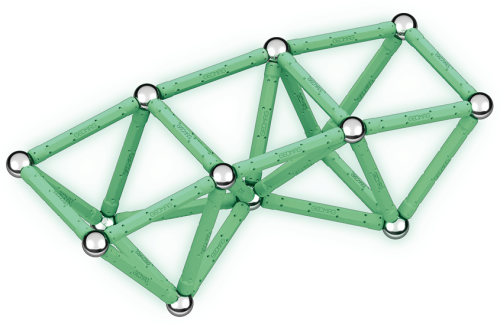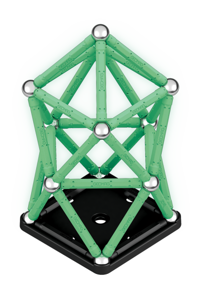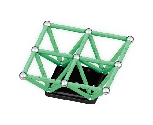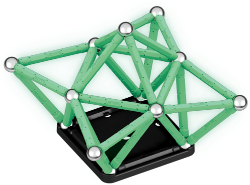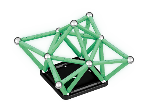 Ve tmě zářící magnetická stavebnice ti přinese nový rozměr zábavy. Stavebnice ze 100% recyklovaného plastu se ve tmě rozhodně neztratí! Balení obsahuje celkem 60 dílků – 28 svítících tyček, 28 kuliček a dva stabilní podstavce černé barvy ve tvaru čtverce a pětiúhelníku. Určeno pro děti od 3 let.