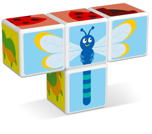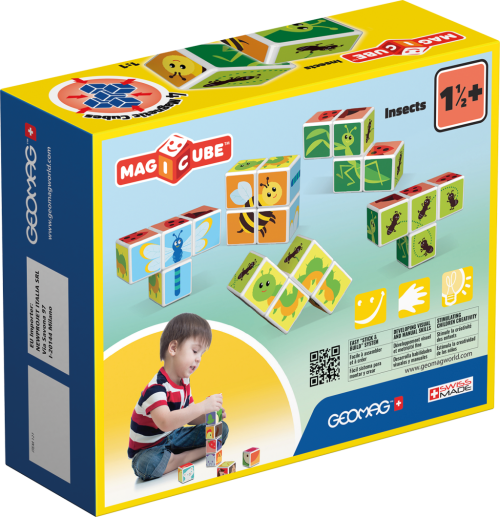 Beruška, vážka nebo mravenci… Jaká další zvířátka z říše hmyzu objevíš? Jednoduché spojování a otáčení zvládnou i ti nejmenší. Díky magnetkům uvnitř kostek krásně drží v prostoru, stavění ve 3D!!! Obsahuje 4 magnetické kostičky a 6 tipů na skládání (3 kartičky). Určeno pro děti od 1,5 roku.