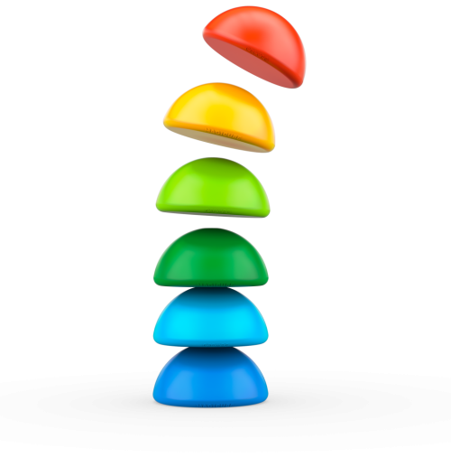Magnetická stavebnice Stavění věží baví i malá miminka Obsahuje šest magnetických polokoulí v šesti barvách Vyrobeno ve Švýcarsku, z recyklovaného plastu