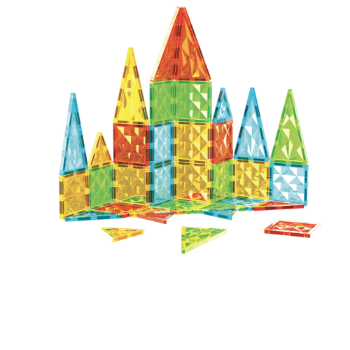 Geomag Magnetic Tiles 44 dílků je kreativní stavebnice, která nabízí 44 průhledných magnetických dílků ve čtyřech jasných barvách – červené, žluté, zelené a modré. Dílky mají různé tvary, které zahrnují 20 čtverců, 12 rovnostranných trojúhelníků, 8 rovnoramenných a 4 pravoúhlé trojúhelníky. Díky magnetům umístěným na všech stranách jednotlivých dílků je možné snadno vytvářet různé 2D obrazce, jako jsou hvězdy nebo geometrické vzory, ale také komplexní 3D struktury jako hrady, zvířata nebo jiné fantazijní objekty.