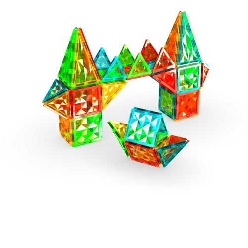 Tvarová rozmanitost stavebnice zahrnuje 28 čtverců a 32 trojúhelníků různých typů – rovnostranné, rovnoramenné i pravoúhlé. Díky tomu je možné sestavit různé modely, od jednoduchých 2D obrazců až po náročné 3D struktury, jako jsou hrady, rakety nebo abstraktní tvary, které jsou na obalu i v produktových fotografiích názorně zobrazeny. Díky své konstrukci a magnetickým vlastnostem jsou dílky stabilní a zároveň snadno rozebíratelné, což přispívá k bezpečné a zábavné hře.