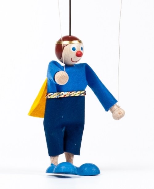 Nepostradatelný v pohádkových příbězích o hradech, princích a princeznách. Bude to hrdina, který se neohroženě postaví drakovi a všem nebezpečím nebo princ Nekňuba, před kterým princezna radši uteče.... Ručně vyráběná loutka prince z chráněné dílny. Nepostradatelný v pohádkových příbězích o hradech, princích a princeznách. Ručně vyráběná loutka z chráněné dílny, velikost loutky: cca 12 cm bez vodícího drátku. Díky vodícím nitím, má loutka pohyblivé ruce. Produkt se může lišit v barevných detailech. Hlavní vlastnosti: ručně vyráběná loutka z chráněné dílnyvelikost loutky je 12 cm bez vodícího drátkudíky vodícím nitím, má loutka pohyblivé ruce