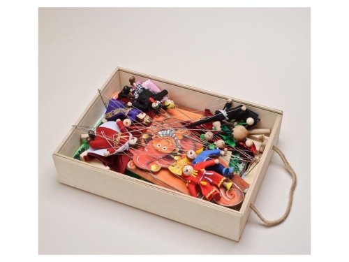 Hledáte velké loutkové divadlo s hromadou loutek? Je tu pro Vás Gerlichovo maxi divadlo se 14 krásnými loutkami. Přinášíme vám krásné, propracované, pohádkové dřevěné loutkové divadlo s jednotlivými loutkami, které probudí u Vašich dětí fantazii, posílí paměťové a výrazové schopnosti a bude bavit celou rodinu. V dřevěné krabici o rozměru 46x41x32 cm naleznete 14 dřevěných loutek z chráněné dílny, 11 barevných scén, proscenium a oponu. Velikost loutek 12-15 cm. Loutky se mohou lišit v barevných detailech. Obsahuje nové scény na kroužkové vazbě (s podlahou) a boční scenérie: na zámku / před zámkempřed chalupou / v chalupěperníková chaloupka / v perníkové chaloupcev lese / u jeskyněv pekle / u rybníkav rybníku Obsahuje loutky: král Ferdinand královna Alžběta princezna Anička princ Slavomír český Honzatříhlavý drakčertík Brunočaroděj Vilémkašpárekbabička Anežkakluk Jeníčekholčička Maruškamyslivec Milošježibaba Dorota Celá loutková sestava je zabalena v praktické dřevěné krabici s posuvným víkem a úchytem. Hlavní vlastnosti: dřevěné divadlo s scénami na kroužkové vazbě, kulisami a 14 loutkaminově řešené scény s podlahou pro ještě lepší divácký zážitekručně vyráběné loutkyrozměry hlavní scény jsou 40x23 cm, rozměry bočních kulis jsou 9,5x23 cmdivadlo lze rozšířit o další loutky