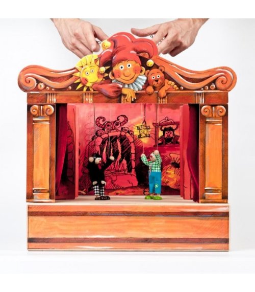 Půvabné dřevěné loutkové divadlo pro vaše děti. Ponořte se spolu s dětmi do světa nejznámějších českých pohádek. Vhodné pro děti od 3 let. Krásně propracované dřevěné loutkové divadlo s jednotlivými loutkami, probudí u Vašich dětí fantazii, posílí paměťové a výrazové schopnosti. Velikost loutkového divadla: 46 x 41 x 32 cm Velikost loutky: 12-15 cm Sestava obsahuje dřevěnou krabici, 8 dřevěných loutek, 4 scény, proscenium s veselým kašpárkem a oponu. Loutky se mohou lišit v barevných detailech. Obsahuje oboustranné kulisy: Na zámku / Před zámkem U jeskyně / V pekle Obsahuje loutky: Král Ferdinand Královna Alžběta Princezna Anička Princ Slavomír Tříhlavý drak Čertík Bruno Čaroděj Vilém Kašpárek Celá loutková sestava je zabalena v praktickém dřevěném kufříku s posuvným víkem. Hlavní vlastnosti: Dřevěné divadlo s 2 oboustrannými kulisami a 8 loutkamiRučně vyráběné loutkyRozměry hlavní scény jsou 40x23 cm, rozměry bočních kulis jsou 9,5x23 cmDivadlo lze rozšířit o další loutky a kulisy