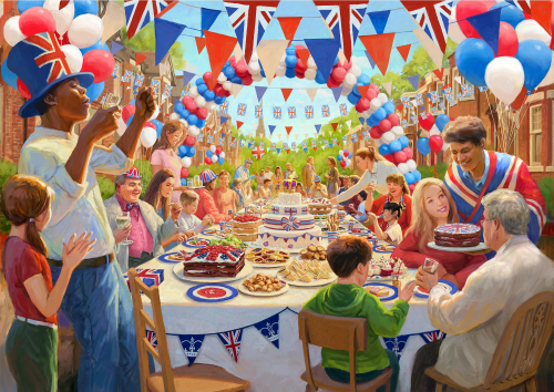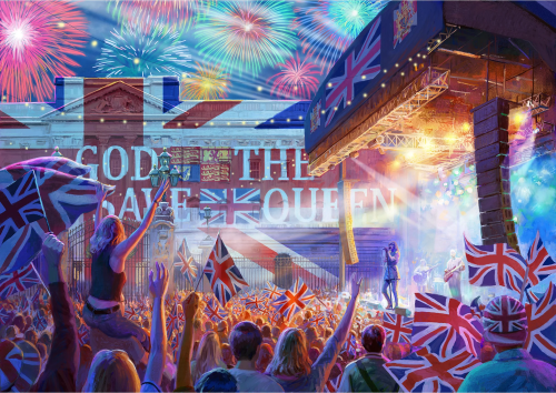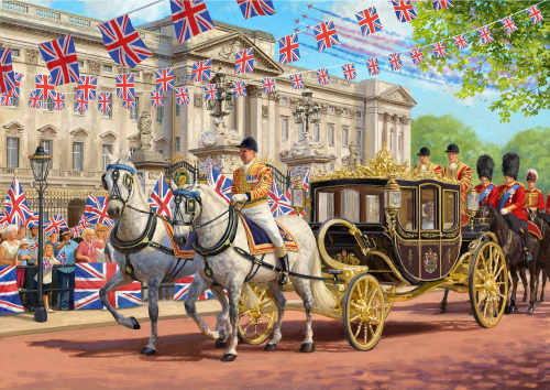 Poznejte čtyři významné události, které se konají během prodlouženého červnového víkendu v Británii: Derby v Epsom Downs, koncert v Paláci, jízda královnina kočáru v rámci Trooping the Colour a samozřejmě pouliční oslavy při jubilejním královském obědě! Balení obsahuje 4 puzzle se stejným počtem dílků a rozměrem. Součástí balení jsou předlohy skládaných motivů.