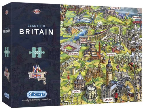 Puzzle s motivem kreslených památek Londýna Marie Rabinky od anglického výrobce GIBSONS.