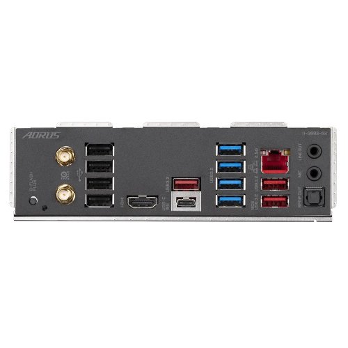 Externí porty: *1 x Q-Flash Plus button *2 x SMA antenna connectors (2T2R) *4 x USB 2.0/1.1 ports *1 x HDMI port *3 x USB 3.2 Gen 2 Type-A ports (red) *1 x USB Type-C port, with USB 3.2 Gen 1 support *4 x USB 3.2 Gen 1 ports *1 x RJ-45 port *2 x audio jacks *1 x optical S/PDIF Out connector