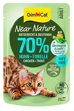 Kompletní krmivo přizpůsobené potřebám koček od 7 měsíců, lahodná kapsička s kuřecím masem a pstruhem.