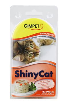 Shiny Cat – lahůdkové, čistě masové konzervy – pouze přírodní směs kuřete s papájou. V konzervě je vidět na jemno nakrájené kuřecí maso a papája, bez umělých přísad a konzervačních látek. Papája je přirozeným zdrojem antioxidantů a vitaminů. Konzerva je obohacena také o minerální látky, tuky a aminokyseliny. Maso je obaleno v lahodném želé. Díky tomu je tato strava nejen vysoce stravitelná, ale také velmi chutná je vhodná i pro koťata. Konzerva obsahuje vysoké množství proteinů, které podporují zdraví a imunitní systém vaší kočky. Obsahuje také vyvážený poměr vápníku a fosforu, které jsou potřebné pro růst kostí a kloubů. Konzerva je vyrobena z čerstvých a kvalitních surovin.