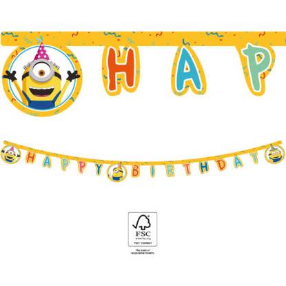 Girlanda s motivem Mimoni Happy Birthday. Délka 2 m.