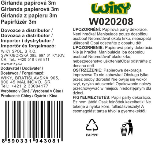 Girlanda barevná délka 3 m, vícebarevná, kočka