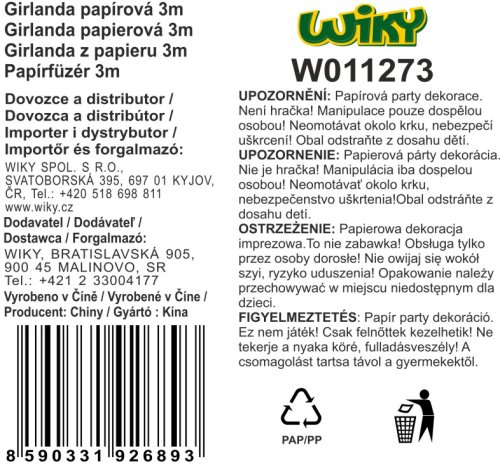 Na správné párty nesmí chybět pořádná výzdoba. Girlandy jsou pro tento účel přímo jako stvořené. Jsou skvělou dekorací do fotokoutku, na zahradní party, dětského pokoje nebo kamkoli jinam. Papírová barevná girlanda o délce 3m. Rozměry balení 17 x 22 x 0,5 cm.