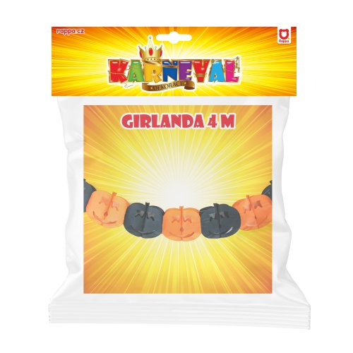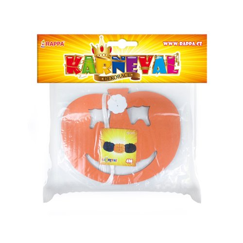 Stylová girlanda je perfektní ozdobou sálů a večírků v období Halloweenu! Černo-oranžová girlanda s veselými dýněmi je vyrobena z papíru.