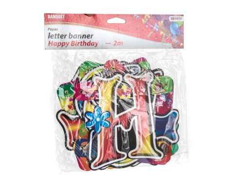 Papírová narozeninová girlanda My Party, délka 2 m, nápis Happy Birthday. Výrobek využijete na zahradní párty, pikniku apod.