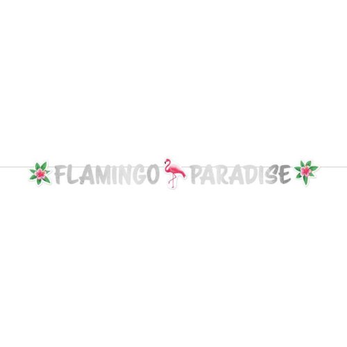 Girlanda s nápisem Ráj plameňáků. Rozměry: 135 x 15 cm.