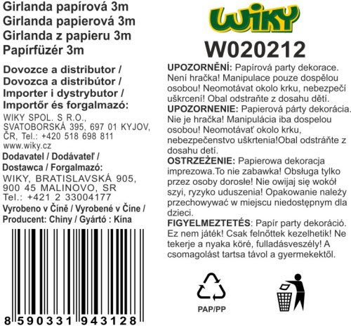 Girlanda papírová růžovobílá 3 m - vzor jednorožec