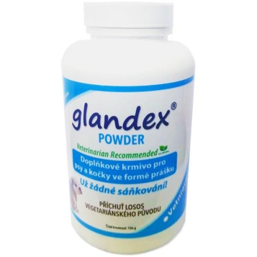 Složení Glandex je vyráběn v USA z vysoce kvalitních přírodních složek zahrnujících dýňové semínko, vlákninu z jablečné dřeně, bromelain a quercetin. Je obohacen také o probiotika. Krmný návod Podávejte 1x denně dle níže uvedeného dávkování. Je potřeba zajistit neustálý přístup k pitné vodě. Nepodávejte březím a zvířatům mladším 12 týdnů věku. Výrobek není vhodný pro jiné druhy zvířat. Uchovávejte mimo dosah dětí. V případě, že je pes nebo kočka na speciální dietě (např. diabetik) nebo užívá léky, před použitím doplňku Glandex se poraďte se svým veterinárním lékařem. Glandex Soft Chews – pro psy: dávkuje se 1x denně formou pamlsku Psi pod 7 kg - 1/2 žvýkačky denně Psi 7-12 kg - 1 žvýkačka denně Psi 12-24 kg - 2 žvýkačky denně Psi 24-35 kg - 3 žvýkačky denně Psi nad 35 kg - 4 žvýkačky denně Glandex Powder – doporučeno pro větší plemena psů a kočky: dávkuje se 1 x denně posypem na krmivo Kočky a psi pod 7 kg - 1/8 čaj. lžičky denně/200 dávek v balení Psi 7-12 kg - 1/4 čaj. lžičky denně/100 dávek v balení Psi 12-24 kg - 1/2 čaj. lžičky denně/50 dávek v balení Psi 24-35 kg - 3/4 čaj. lžičky denně/32 dávek v balení Psi nad 35 kg - 1 čaj. lžička denně/25 dávek v balení Balení 30, 60, 120 ks Soft Chews (žvýkačky) nebo Powder (prášek) 70 g