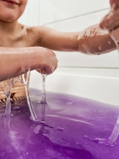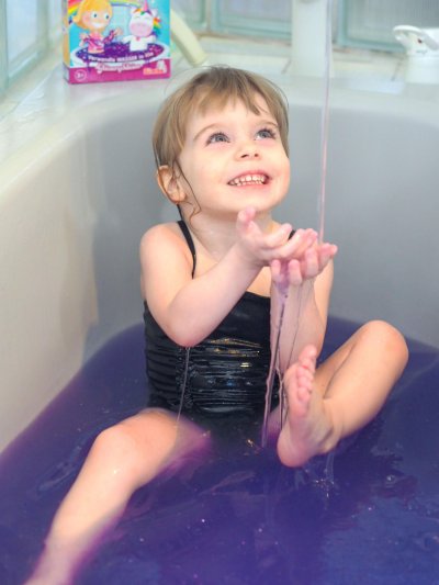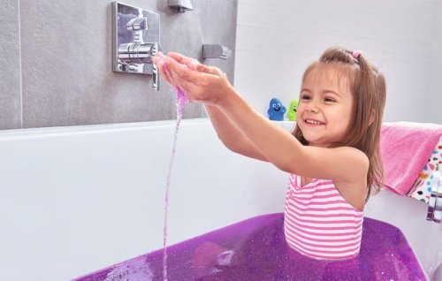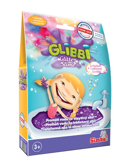 Prášek Glibbi přemění vodu do fialového třpytivého slizu a zábavné koupání může začít, poté stačí jen doplnit vodu a vytáhnout špunt. V balení 80 g Glibbi sliz prášku a 70 g Glibbi rozpouštědla.