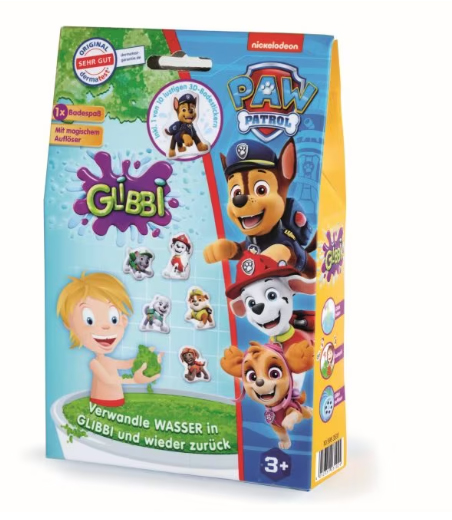 Proměň vodu v Glibbi rosol. Glibbi se smíchá s vodou a může začít zábavné koupání. Voda se změní v barevnou hmotu, která nelepí, nebarví kůži ani vanu. Po ukončení koupele se voda pomocí speciálního rozpouštěcího" sáčku, přemění zpět na barevnou vodu, kterou lze bezpečně a snadno vypustit. Bezpečné pro pokožku - Bezpečné k odtoku - Snadné čištění - Bez skvrn. Náš prášek je certifikován jako biologicky odbouratelný! Balení obsahuje 1x 150 g Glibbi prášku, 1x 150 g rozpouštědlo a 1 z 10 3D samolepek Tlapková patrola, které plavou a drží na povrchu, když jsou mokré.