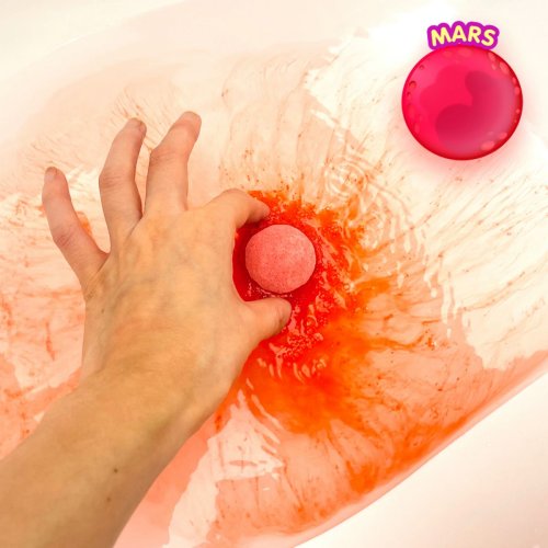 Šumivé barevné bomby do koupele Glibbi Vesmír pomohou dětem naučit se o planetách a Slunci zábavnou formou, během koupání a hraní ve vaně. Sada obsahuje 9 bomb do koupele s hmotností 35 g, z nichž každá reprezentuje jednu planetu. Zábavná fakta i naučné infromace o planetách jsou popsány na kartičkách. Bezpečné pro pokožku, neucpává odpad, snadný úklid, nedělá skvrny, biologicky odbouratelné.
