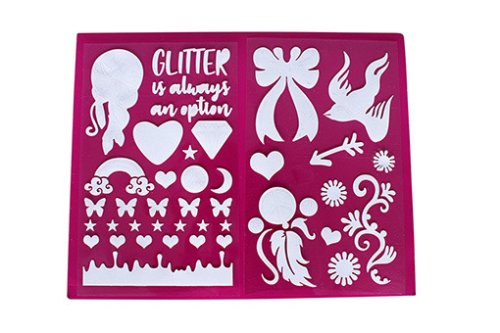 Užijte si to pravé třpytivé tetování. A už žádný nepořádek. Sloupněte z průhledné samolepky ochrannou fólii a naneste na ni pomocí Glitterific pera třpytky. Přepněte pero do vysávacího módu a přebytečné glitry vysajte. Pak si stačí jen tetování nalepit. Budete opravdu cool.