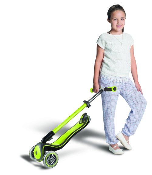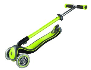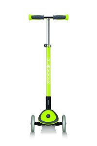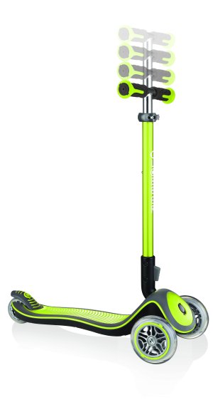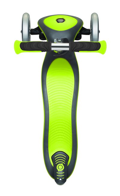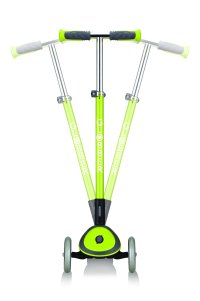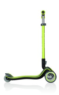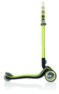 Globber Koloběžka Elite Deluxe Lime Green Jedinečná skládací dětská koloběžka-tříkolka vyznačující se unikátním skládacím systémem, díky kterému je efektivní a skladná.