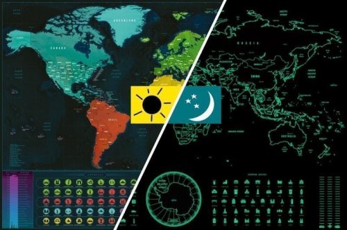 Speciální svítící mapa světa, která se nabíjí světlem a v noci svítí.