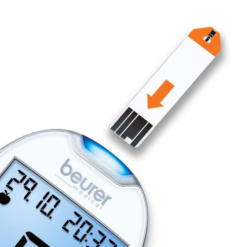 • snadné použití: podsvícený displej, podsvícený slot na test. proužky, široké proužky, jednoduché měření