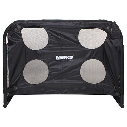 Fotbalovou branku Merco Goalpost s plachtou Merco Target Vám můžeme jenom DOPORUČIT. Robustní, ale zároveň až překvapivě lehká ocelová konstrukce s průměrem 38 mm a povrchovou úpravou práškové barvy spolu se sítí z jemné a zároveň dostatečně pevné polyesterové síťoviny obšité širokým pruhem odolné tkaniny uspokojí potřeby každého fotbalisty i fotbalového týmu, jenž uvažuje o pořízení snadno přenosné, případně i skládací tréninkové fotbalové branky. Branka se jednoduše a rychle skládá i rozkládá pomocí speciálního zacvakávacího systému a pouze na dvou místech jsou použity šrouby, které jsou spolu s klíčem součástí balení. Součástí branky Merco Goalpost jsou i kotvy k zajištění branky před samovolným pohybem a hlavně je součástí branky plachta Merco Target, která je vyrobená z polyesteru vyztuženého PVC a jejím cílem je zdokonalení přesnosti střelby, k čemuž slouží čtyři otvory o průměru 25cm rozmístěné po plachtě. Aby byla naše nabídka opravdu dokonalá a uspokojila všechny zájemce, je tento model k dispozici ve třech dobře promyšlených rozměrech, tak aby si každý vybral tu svou správnou velikost, přesně podle svých potřeb. Rozměry branky: 120 x 80 x 60 cm. Váha branky se sítí: cca 8 Kg Váha plachty : 0,4 Kg
