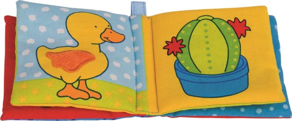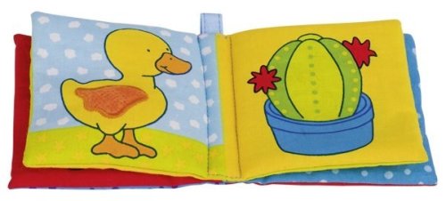 Obrázková knížečka pro nejmenší je vyrobena z bavlny se všitým pískátkem a šustící fólií. Na 4 barevných listech najdeme osm různých obrázků. Praktické poutko pro připevnění ke kočárku, sedačce aj. Lze prát v pračce při max 30°C. Vhodné pro děti od narození. Rozměr: 9 x 9 x 3 cm.